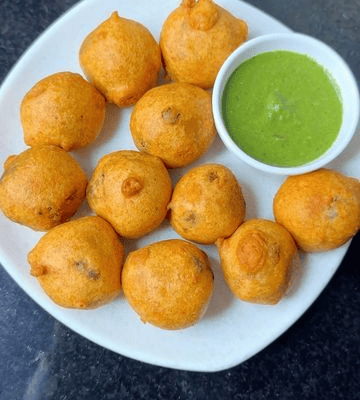 Savory potatoes dipped in chickpea batter, fried and served with...