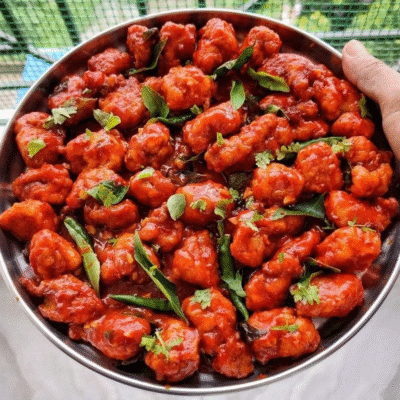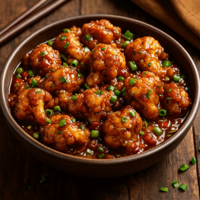 Indo-Chinese dish made with cauliflower florets that are battered, fried,...
