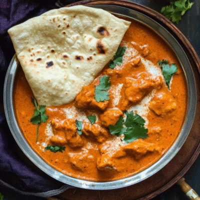 Fluffy naan stuffed with chicken tikka and herbs, brushed with...