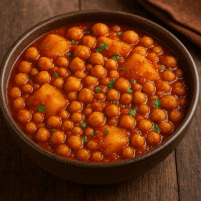 Chickpeas added with potatoes, cooked with onion and tomato based...