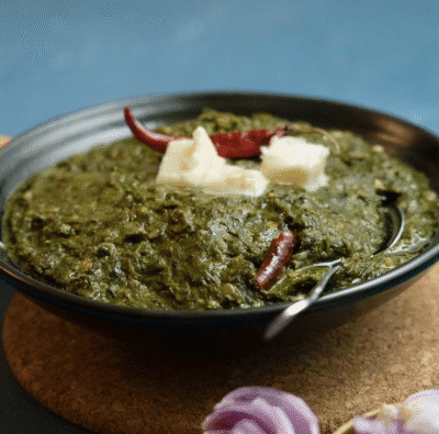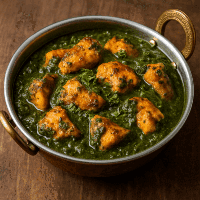 Cubes of paneer, cooked with creamy spinach and mild spices....