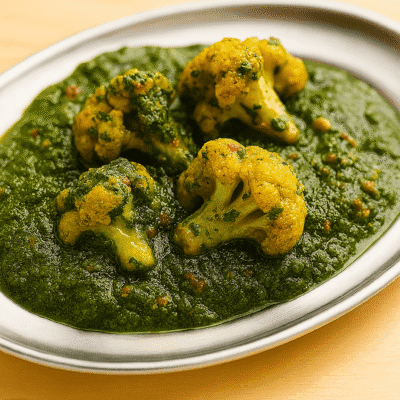 Florets of cauliflower cooked with creamy spinach, onions and tomatoes....