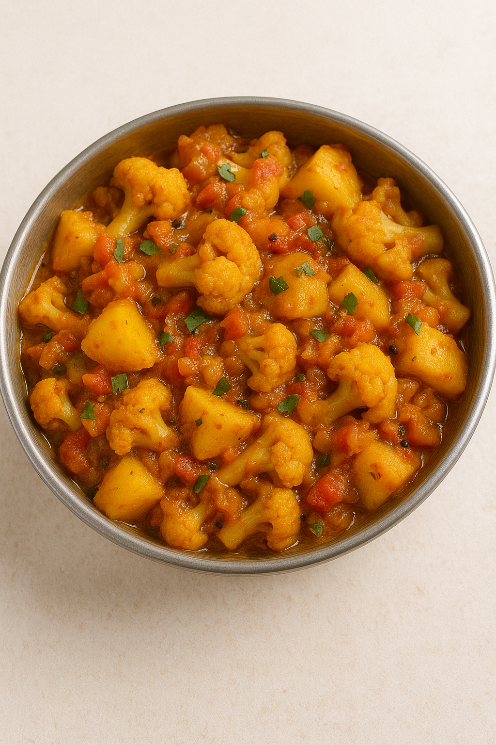 Cauli Flower and potatoes sauteed with Onion, Tomatoes and spices. “CHEF SPECIAL”. *VEGAN **GLUTEN FREE